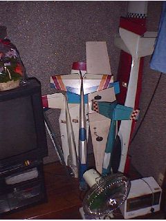 現在飛行可能な機体は、洋服のハンガーを使ってぶら下げています。