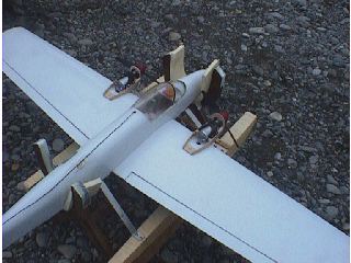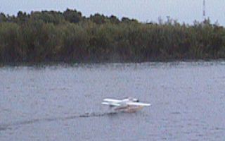 胴体とフロートの抵抗の間で動作するラダーが効いています。非常にスムーズなパターンを飛行します。 横でみていると完成された飛行に見えますが、作者によるともう少し軽量化したいとの事で・・
