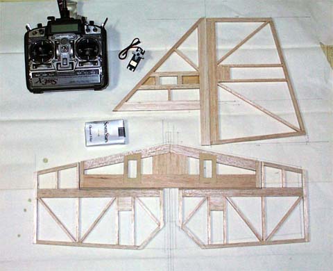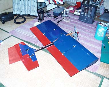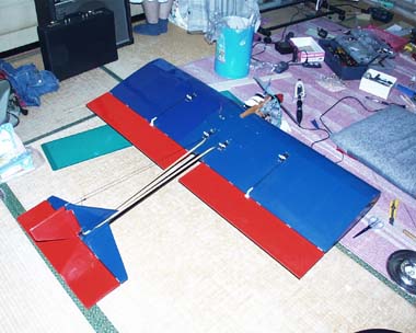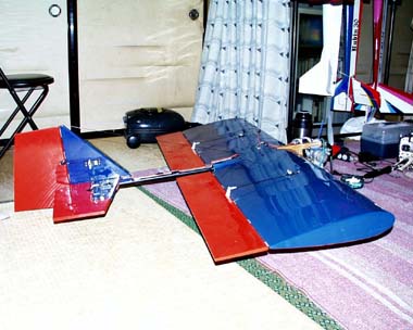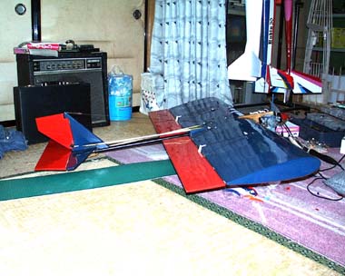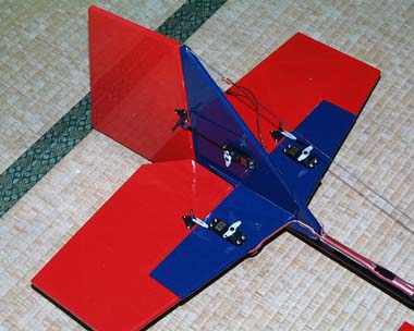そこで年末の休暇を利用して思いきってテールモーメントを短くして尾翼を特大サイズで作り直すことにしました! 特にラダーは送信機よりも大きく特大です。サーボもコアレス仕様のものを各舵面に一つずつ尾翼に埋め込むようにしました。