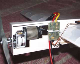 スピコンと受信機は当初主翼の中に収める予定でしたが、サーボの延長コードやメカ室のハッチの重量増加を嫌って、結局胴体に両面テープで直付けとなりました。