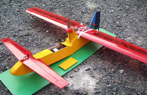 電動400クラスのギアダウンを動力とする小型先尾翼飛行艇です。 休日と風の折り合いがつかず(笑)、現在初飛行を待っています。 |