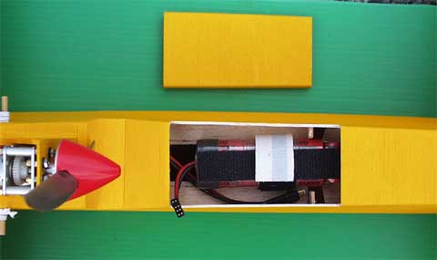 サーボはエルロン2、先尾翼の昇降舵と ラダーにそれぞれ一つずつ。 9gサーボが合計4つです。